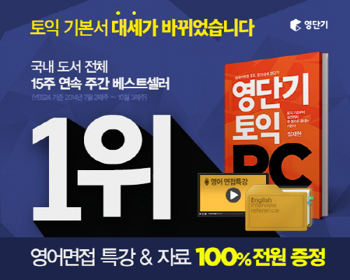 외국어 학원 1위(2013년 12월 1주~ 현재, 외국어학원 분야 1위, 랭키닷컴 기준) '영단기'는 토익 교재 <영단기 토익 RC>가 토익 분야 15주 연속 1위(예스24기준, 7월 2째주~10월 3째주)에 오른 것을 기념해 11월 3일(월)까지 영단기 대표강사 빅토리아장 선생님의 '영어면접 강의 및 자료 무료증정 이벤트'를 실시한다.