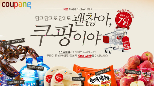 쿠팡은 쌀, 과일 등의 신선식품을 엄격한 검수 과정을 거친 싱싱한 상품들로 선보인다. '볏고을 백미20kg'은 김제에서 수확해 바로 도정한 상품이다. 2014년 햅쌀을 3만9900원의 합리적인 가격으로 구입할 수 있다. 인위적인 착색이나 강제 후숙 처리를 하지 않은 신선한 감귤 '제주 조생노지감귤 10kg'은 과실 크기에 따라 7800원~1만1900원에 판매한다.