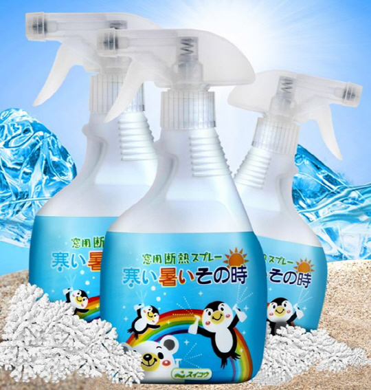 일본 스이코우社가 개발한 '사무이아쯔이'는 단열 필름을 액상화한 스프레이 형태의 단열 에어캡이다. 유리창에 뿌리기만 하면 단열막을 형성해 실내로 유입되는 냉기를 막아 실내 온도 하락을 억제하는 제품이다. 지난 2011년 일본 원전사고 후 전력난이 가중돼 에너지 절감 수요가 급증하면서 일본에서 30만개 이상 판매되며 화제가 됐다.