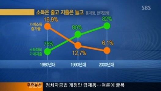 저축률 세계 최저 수준 소득 줄고 지출만 느네", "