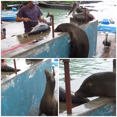 이에 따르면 장보는 바다사자의 모습이 포착된 곳은 남미 에콰도르 갈라파고스 제도 내 산타크루즈 섬에 있는 한 수산시장으로, 바다사자는 참치와 다랑어를 파는 한 상점에서 장을 보듯 판매대 앞에 서서 생선을 손질하는 모습을 바라봤다.