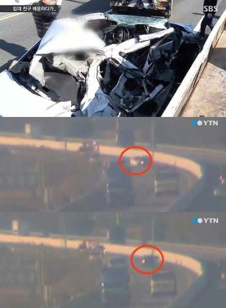 사고 당시 폐쇄회로(CCTV)에는 김 씨가 앞서 가던 스포티지 승용차를 추월하려다가 차가 균형을 잃고 2차로를 벗어나 트럭을 들이받는 모습이 고스란히 찍혔다.