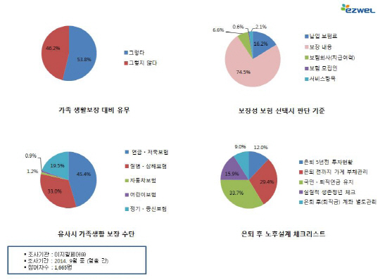 또 유사시 가족들의 생활보장을 위해 대비하고 있느냐에 대해 직장인 53.8%는 '대비하고 있다'고 답했고 '대비하고 있지 않다'는 의견도 46.2%에 달했다.