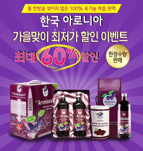 한국아로니아는 이같은 점에 주목, 세계 최대의 독일 유기농 농장인 현지에서 채취 및 즉시 가공한 아로나이즙을 선보이고 있다. 독일 친환경농산물 인증 전문업체 Bio의 까다로운 인증기준을 통과해 유기농 인증마크를 획득, 100%유기농이라는 게 회사 관계자의 설명이다. 아로니아 제품 관련 자세한 내용은 홈페이지(http://www.aronia-korea.net)에서 확인이 가능하다.