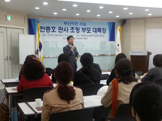 한국청소년상담복지개발원(원장 권승)은 부산 이전 기념으로 지난 29일 부산시 해운대구 센텀사이언스파크에서 '천종호 부산가정법원 부장판사의 부모특강'을 개최했다.