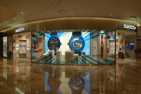 스와치는 국내 대표매장인 서울 신사동 가로수길 플래그쉽 스토어에 이어 서울 잠실의 롯데월드몰에 40평 규모의 첫 번째 메가스토어를 마련했다. 단일 브랜드의 시계 제품으로 가장 많은 디자인을 한 자리에서 만나볼 수 있는 메가스토어로 오리지널, 스킨과 같은 베스트 셀러 라인은 물론 최근 스와치가 야심차게 선보인 혁신적인 오토매틱 시계인 '시스템51' 라인업까지 구비했다.