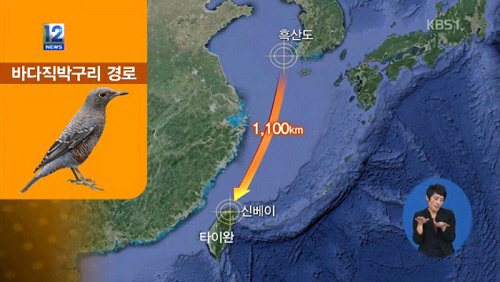 앞서 철새연구센터에서는 바다직박구리에 고유번호를 기록한 연구용 가락지를 발목에 부착해 흑산도에서 날려 보냈다. 이후 33일 만에 흑산도에서 1천 100km 떨어진 대만에서 바다직박구리가 발견된 것이다.