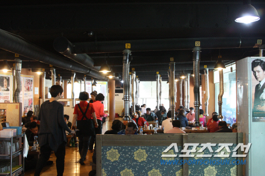 | ◇한우천국 본점 내부 모습. 이른 점심시간임에도 불구하고 많은 사람들이 한우천국을 찾고 있다. |