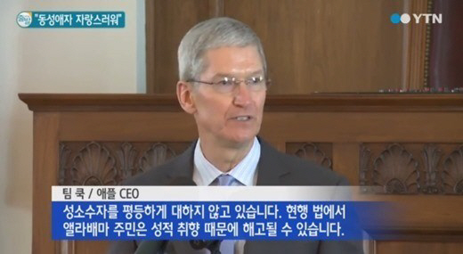 팀 쿡은 30일 경제지 '블룸버그 비즈니스위크'에 기고한 글을 통해 "난 동성애자라는게 자랑스럽고 신이 내게 준 선물 중 하나라고 생각한다. 내 성적 취향을 부인도 인정한 적도 없었다"라고 공개했다.