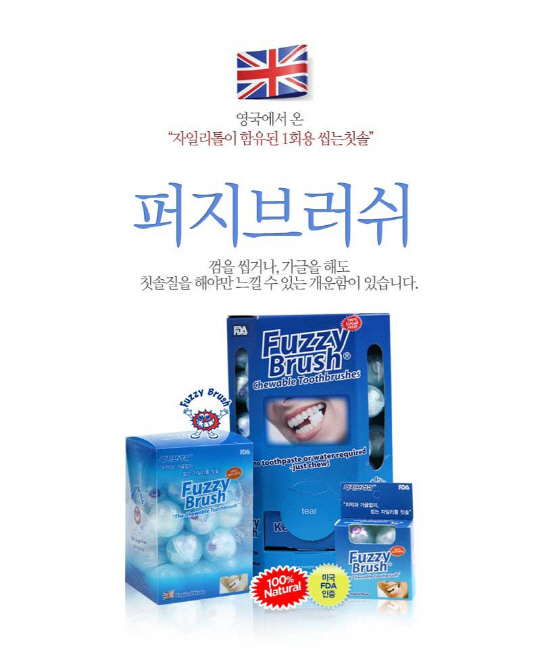 퍼지브러쉬는 물과 치약 없이 껌처럼 씹는 1회용 칫솔을 말한다. 포켓사이즈로 휴대가 간편해 언제, 어디서나 사용할 수 있다는 것이 특징이다. 치약을 짜서 쓰는 제품이 아니다. 사용법도 간단하다. 캡슐을 열고 퍼지브러쉬를 꺼내 입안에 넣은 후 씹으면 된다. 혀를 이용해 브러쉬를 움직이고 껌처럼 씹으면 입안을 개운하게 해 준다.