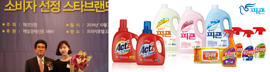 최근 서울 프라자호텔 다이아몬드홀에서 개최된 '2014 소비자 선정 스타 브랜드 대상'에서 피죤 섬유유연제 '피죤'과 액체세제 '액츠', 살균세정제 '무균무때' 등은 우수한 품질과 제품 디자인을 비롯해 높은 브랜드 충성도 등 다양한 항목에서 높은 평가를 받아 수상했다.