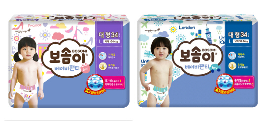 생활용품기업 깨끗한나라가 걸음마 이후 움직임이 많은 아기들의 피부 자극을 최소화한 2015년형 '보솜이 베이비팬티' 기저귀를 출시했다.