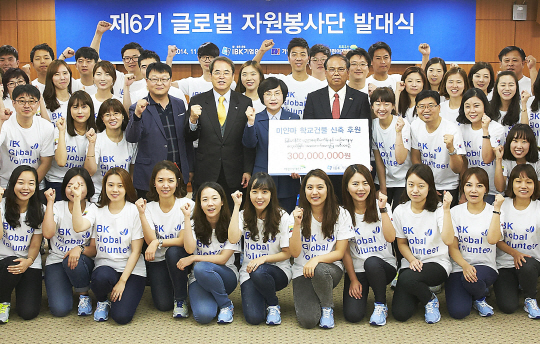 IBK기업은행(www.ibk.co.kr, 은행장 권선주)은 3일 오전 서울 중구 을지로 본점에서 '제6기 글로벌 자원봉사단' 발대식을 열고, 미얀마 학교 건립을 위한 후원금 3억원을 어린이재단에 전달했다.