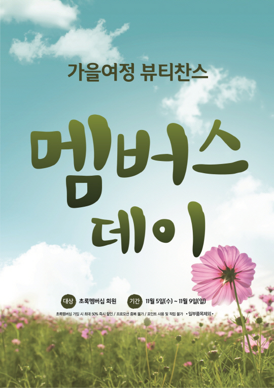 세계 청정 자연에서 찾은 뷰티 에너지를 전하는 네이처리퍼블릭(대표 정운호)은 환절기 민감해진 피부관리를 돕기 위해 초록 멤버십 회원을 대상으로 5일부터 제품을 최대 50% 할인 판매하는 '네이처 멤버스데이'를 실시한다고 밝혔다.