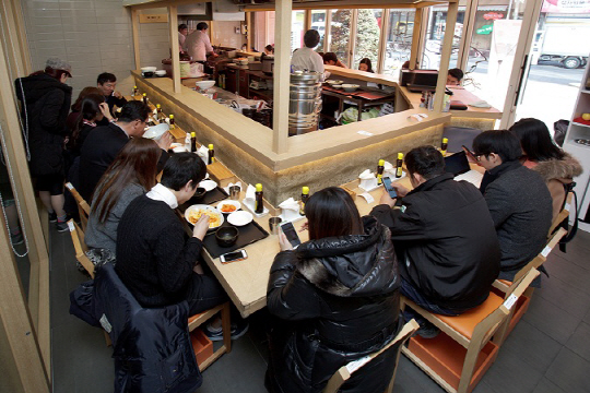 니드맘밥 관계자는 "개방형 주방과 일렬 좌석 배치, 식권발매기는 소형 매장의 회전율을 높이기 위한 조치"라며 "덕분에 1일 평균 13회전 이상을 할 정도로 인기를 얻고 있다"고 말했다.