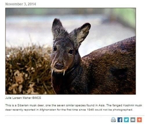 뱀파이어 노루 발견, 60년만에 발견됐네요", "