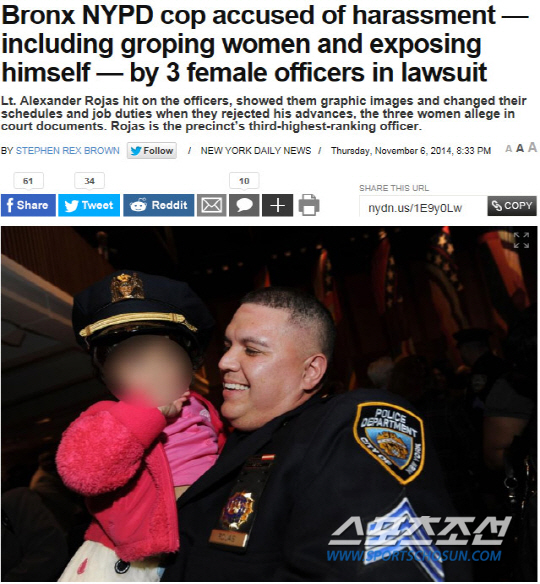 미국 뉴욕 경찰국 부서장이 여자 경찰에게 자신의 성기를 노출하는 등 음란행위를 일삼다 피소 당했다.