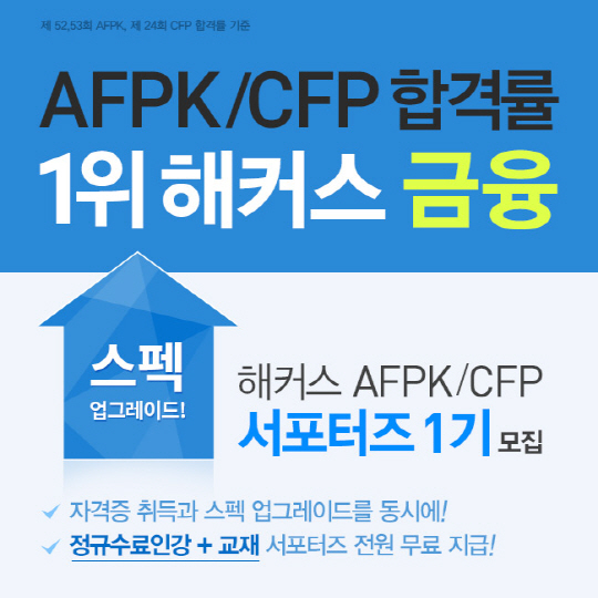 AFPK/CFP 공식 합격률 1위 해커스패스 금융(www.PASS.com)이 16일까지 '해커스패스 AFPK/CFP 서포터즈 1기'를 모집한다.