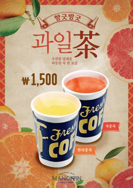 글로벌 외식문화기업 MPK그룹이 운영하는 커피&머핀 전문점 마노핀이 겨울 시즌을 맞아 과일차 2종을 선보인다.