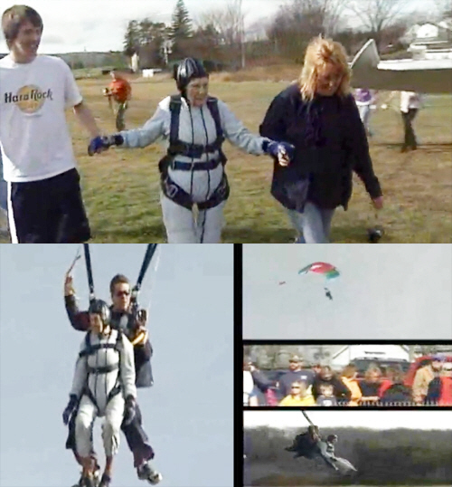 커닝엄 할머니의 스카이다이빙은 이번이 세번째가. 그는 90세에 처음 스카이다이빙에 성공했으며, 교관과 몸을 연결해 뛰어내리는 방식으로 헬기에서 뛰어내렸다.