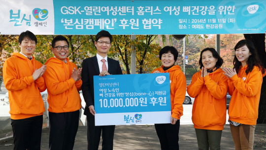 한편, 이날 행사엔 GSK와 열린여성센터와의 홈리스 여성 뼈건강을 위한 후원금 1000만원을 전달하는 지원 협약식도 함께 진행했다. 후원금은 전국 의료진을 대상으로 한 온라인 기금 적립 참여 행사를 통해 마련됐다. 열린여성센터에 전액 지원돼 홈리스 여성들의 뼈 건강을 위한 식단과 신체 활동에 사용될 예정이다.