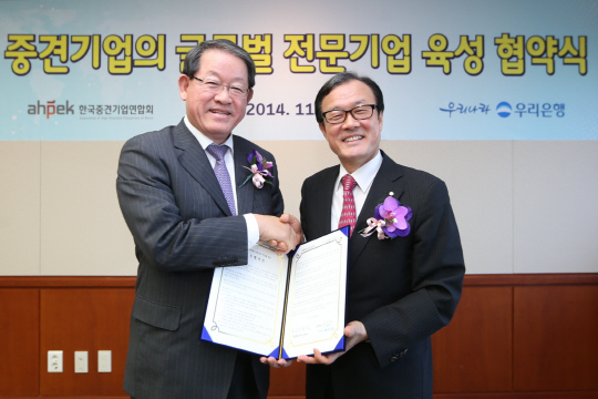 우리은행(은행장 이순우)이 13일 한국중견기업연합회(이하 중견련)와 '중견기업의 글로벌 전문기업 육성을 위한 업무협약'을 체결했다고 밝혔다.