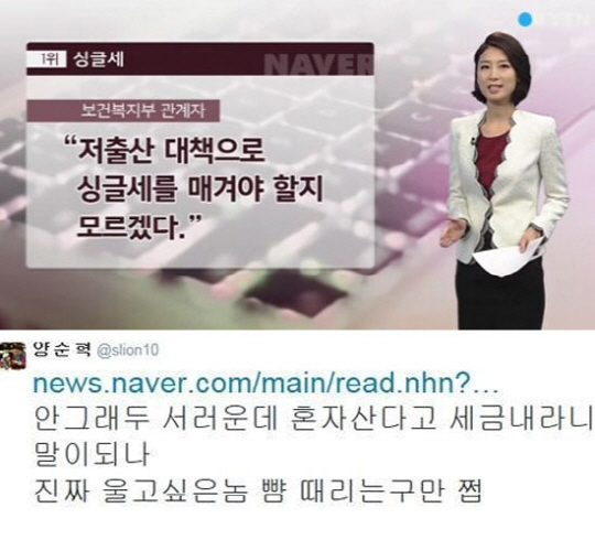 이어 "지난해 합계출산율(여성 한 명이 가임기간 출산할 것으로 예측되는 자녀 수)이 1.187명으로 경제협력개발기구(OECD) 최하위에 머무른 한국의 저출산 문제가 개선되지 못한다면 정부도 싱글세 부과를 검토할 수밖에 없다는 것"이라고 덧붙여 논란이 커졌다.