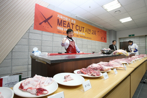 또, 지난 3일에는 지육전문가를 초청, 현장에서 돼지 한 마리를 7가지 대분류와 22가지 소분류로 나누고 고기의 부위별 특징과 조리법을 연구하는 수업을 진행했다.