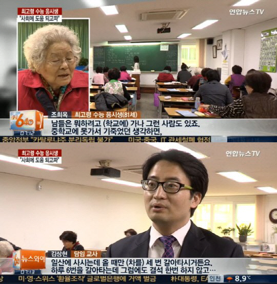최고령 수능 응시생, 반성하게 만드네", "