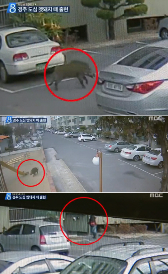 경주의 한 주택가에 이틀간 멧돼지가 8마리가 나타났다. 다친 사람은 없었지만 아파트 단지를 휘젓고 다니는 통에 주민들은 공포에 떨어야 했다.