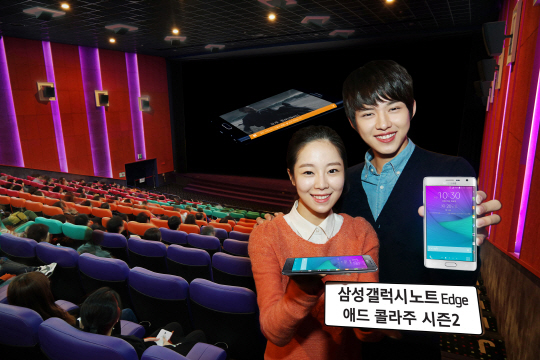 삼성전자가 갤럭시 노트 엣지 출시를 맞아 지난 15일부터 오는 12월 17일까지 메가박스 전관에서 최신 영화 예고편과 제품 광고를 결합한 '애드 콜라주 시즌2'를 진행한다.