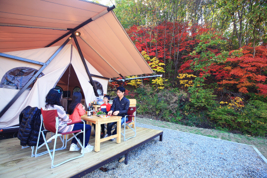 캠핑은 '대세' 차원을 넘어 이제는 국민 레저로 자리 잡았다. 그 성장세도 가파르다. 국내 캠핑산업 규모가 6년 만에 30배나 성장했다는 연구결과도 있다. 캠핑의 매력은 대자연속에서 누리는 낭만에 있다. 청정자연속에서 깃들어 하룻밤을 지내다보면 이만한 일상탈출이 또 없다. 마침 한국관광공사는 11월에 가볼 만한 곳으로 '우리 지역 캠핑장을 소개합니다' 라는 테마 하에 온가족이 함께 떠나면 좋을 지역 캠핑 명소 12곳을 선정했다. '산과 들을 내 품에, 연천-포천-김포 캠핑장(경기 연천-포천-김포)', '믿고 가는 전북의 캠핑장 두 곳, 무주 덕유대야영장& 장수 방화동가족휴가촌(전북 무주-장수)', '계곡 속의 섬에서 누리는 캠핑의 즐거움, 평창 아트인아일랜드캠핑장과 솔섬오토캠핑장(강원 평창)', '서정적인 분위기가 흐르는 캠핑, 경남 고성-거제 오토캠핑장(경남 고성-거제)', '여백과 낙엽 향 가득한 충주 캠핑장(충북 충주)' 등이 그곳이다. 김형우 여행전문 기자 hwkim@sportschosun.com