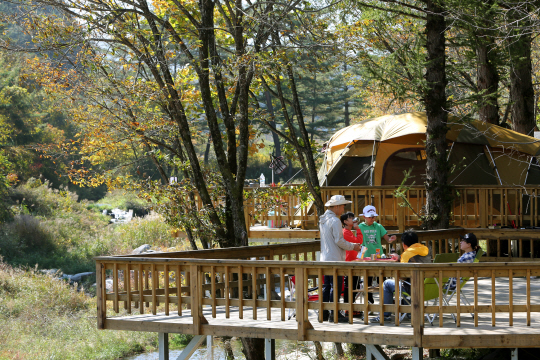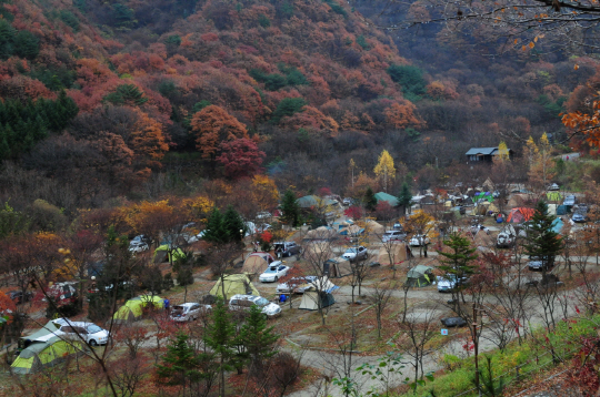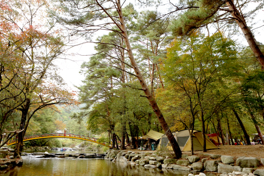 따사로운 가을 햇살과 발밑에 수북한 낙엽 더미, 구수한 장작 냄새. 가을 캠핑에는 여름 캠핑이 주지 못하는 운치와 낭만이 있다. 울창한 숲이나 깊은 계곡에 자리해 자연미가 돋보이는 캠핑장이라면 감동은 더 크다. 무주 덕유산국립공원의 덕유대야영장과 장수 장안산군립공원의 방화동가족휴가촌이 그런 곳이다. 두 곳 모두 캠핑이 국민 레저로 각광받기 전부터 인기를 누려온 '믿고 가는' 캠핑장이다. 통영대전고속도로가 지척으로 접근성이 좋고, 사설 캠핑장에 비해 이용료 또한 저렴하다. 각각 국립공원관리공단과 장수군청이 운영해 시설과 안전 관리도 철저하다. 덕유대야영장은 일반 야영장과 오토캠핑장 모두 예약제로 운영된다. 방화동가족휴가촌은 오토캠핑장만 예약제이고, 일반 야영장은 선착순이다. 해설이 있는 자연 탐방 프로그램과 트레킹을 즐길 수 있으며, 곤돌라를 타고 덕유산 향적봉에 오르거나 장수향교, 논개사당을 둘러보는 등 연계 관광거리도 쏠쏠하다. 덕유대야영장(063-322-3174) 방화동가족휴가촌(063-353-0855)