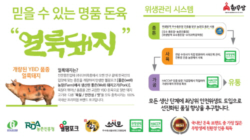 고기집프랜차이즈 '화덕에 꾸운 삼겹살'에서 제공하는 얼룩돼지는 한국인의 입맛에 맞게 육질이 뛰어난 품종을 2번 교잡한 돈육으로 일반 돼지고기와는 다르게 육질, 안전성, 맛 모두를 갖춘 프리미엄 명품 돼지다.