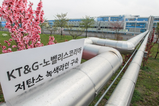 KT&G(사장 민영진)가 19일 열린 '제36회 에너지절약촉진대회'에서 에너지절약 공로를 인정받아 산업통상자원부 장관상을 수상했다. 사진은 KT&G 영주공장에서 인근 공장의 잉여증기를 재활용하는 '저탄소 녹색라인'의 모습.