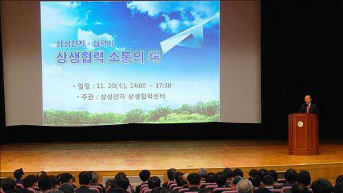 삼성전자는 20일 수원 성균관대학교 대강당에서 1, 2차 협력사와 진솔한 소통을 통해 동반성장 파트너십을 강화하고자 '상생협력 소통의 장'을 개최했다.