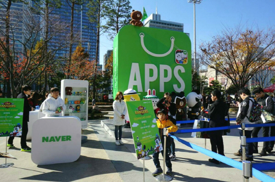 네이버 앱스토어가 20일부터 나흘간의 일정으로 부산 벡스코에서 열리는 국제 게임전시회 '지스타 2014' 야외부스에서 경품 이벤트를 진행한다고 밝혔다. 네이버 앱스토어를 통해 '라인레인저스(LINE Rangers)' 앱을 설치하는 이용자에게 초대형 라인 캐릭터 인형, 마음의 소리 캐릭터 상품, 라인레인저스 피규어 등 다양한 경품을 증정하는 이벤트다.