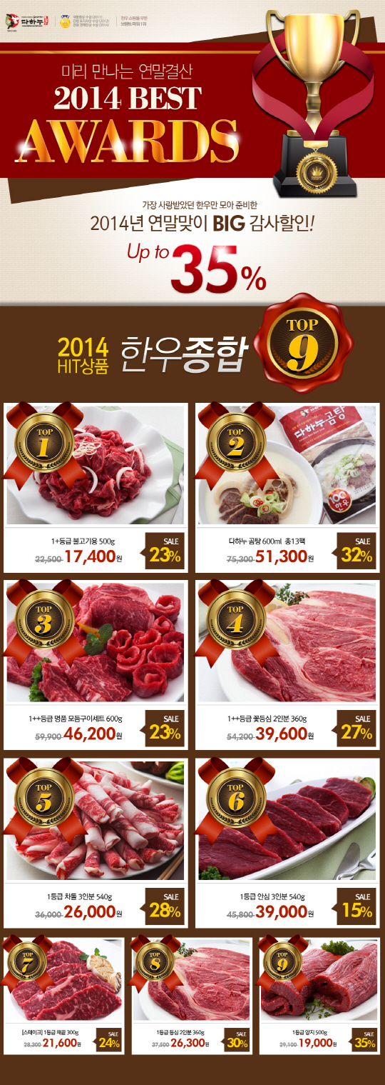 한우전문쇼핑몰 다하누몰(www.dahanoomall.com, 대표 최계경)에서는 한해 동안 다하누몰에 보내주신 성원에 보답하고자 2014년 베스트 상품 할인 특가전을 준비했다.