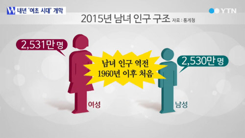 내년 여성인구가 남성을 추월할 것으로 보여 화제다.