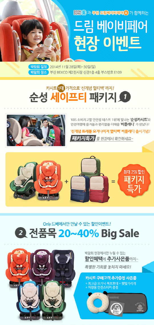 유아용 카시트 전문기업 ㈜순성산업(대표 이덕삼, www.soonsung.com)이 27일부터 30일까지 나흘간 부산 벡스코(BEXCO)에서 열리는 '2014 부산 드림 베이비페어에 참가한다.