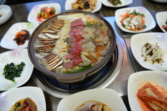 ◇버섯전골=송이버섯의 고장 양양은 표고버섯 등도 유명 특산물이다. 따라서 버섯전골이 맛나다. 최근 몇 년 사이 송이버섯 소출이 줄어 표고, 느타리, 팽이 버섯, 소고기 등을 넣고 끓여낸 버섯전골도 미식거리가 되고 있다. 양양읍 안산 1길에 있는 송이버섯마을은 깔끔한 분위기에 정갈한 상차림, 친절함 등을 두루 갖춘 집이다. 버섯전골(2만5000원·2인), 송이버섯전골(2만5000원·1인)