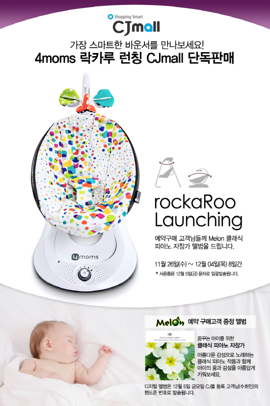 유아용품 수입업체 비앤케이커뮤니케이션즈(대표 고동일, www.imbaby.co.kr)가 미국 육아용품 브랜드 '포맘스(4moms)'의 자동 아기침대 '락카루(rockaRoo) 바운서'를 국내에 첫 론칭한다.
