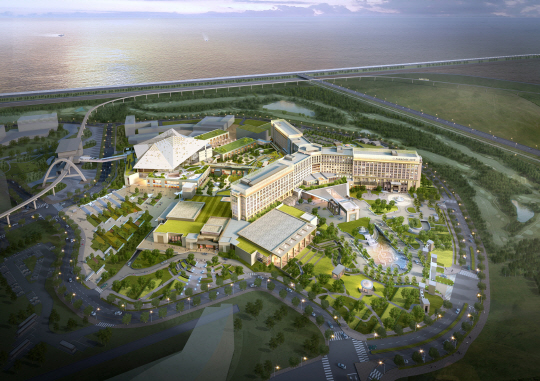 한-중-일 3파전에서는 한국의 파라다이스시티가 첫발을 내디뎠다. '한국판 라스베이거스'를 꿈꾸는 영종도에서 지난 20일 외국인 전용 카지노 기반 복합리조트 기공식을 가졌다.