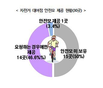 소비자가 요청하는 경우 제공하는 대여점이 14곳(46.6%)이었고 나머지 15곳(50%)은 안전모를 아예 보유하지 않은 것으로 드러났다.