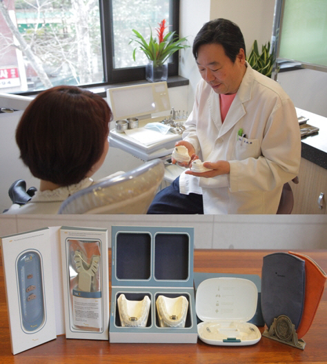 이승규 박사는 "QT33은 뒤로 밀려 있는 아래턱을 앞으로 밀어 주고 혀를 앞으로 내어 공기통로를 확보하여 산소 흐름을 원활하게 하는 코골이 및 수면무호흡을 개선하는 장치로 기존 코골이치료방법에 비해 비용이 적게 들고 효과는 크다"고 힘주어 말했다.