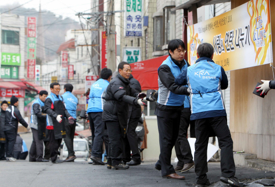 한국마사회는 27일 '따뜻한 한반도 사랑의 연탄 나눔'에 기부금을 전달하는 행사를 가졌다. 용산 한강로1가 쪽방촌에서 진행된 기부금 전달식 직후, 박기성 지역상생사업본부장을 포함한 임직원 100여명은 15가구에 4500장의 연탄을 필요한 가정에 배달했다. 한국마사회는 이날 배달물량을 포함해 총 20만장의 연탄을 기부한다.