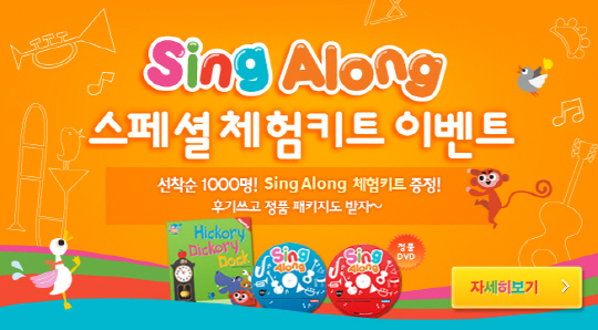 이벤트는 선착순 1000명에게 싱어롱의 마더구스 영어노래 1곡을 완벽하게 체험할 수 있는 '싱어롱 스페셜 체험키트'를 증정하는 내용이다. 스페셜 체험키트는 싱어롱 교재 중 하나인 'Hickory Dickory Dock'의 송 북(Song Book)과 신나는 노래로 이루어진 CD, 해당하는 애니메이션 및 율동이 담긴 DVD로 구성돼 있다. 송 북(Song Book)과 DVD는 정품과 동일한 내용으로, 전문 선생님과 함께하는 맛보기 수업 1회도 즐길 수 있어 싱어롱을 효과적으로 체험할 수 있다.