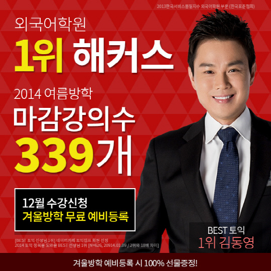 11월 토익시험 후 겨울방학을 앞두고 토익시험공부에 대한 열기가 높아진 가운데, 외국어학원 1위 해커스(www.Hackers.ac)가 최근 진행 중인 12월 수강신청ㆍ겨울방학 예비등록의 인기가 날로 높아지고 있다.