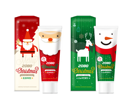 2080 홀리데이 크리스마스 치약은 치약의 맛에 따라 화이트(스노우민트맛), 브라운(초코쿠키맛) 등 2종으로 출시됐다. 산타와 루돌프 등 캐릭터를 통해 크리스마스를 재미있게 연출했다.