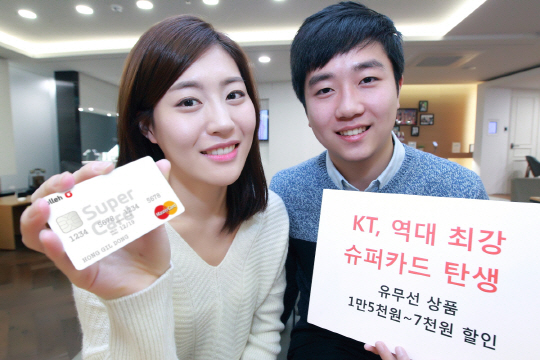 KT(회장 황창규)가 신한카드, 현대카드, KB국민카드, 롯데카드, BC카드, IBK기업은행, JB전북은행 등 국내 주요 카드사와 제휴를 통해 '슈퍼 세이브 카드' 및 '슈퍼 DC 카드'를 출시하고, 역대 최강 통신비 할인 혜택과 더불어 다양한 부가 혜택을 제공키로 했다.
